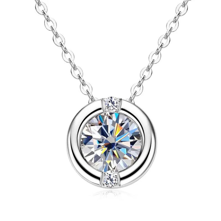 This elegant pendant necklace features a brilliant 6.5mm round 1.02CT Moissanite stone, beautifully set in a sleek design. Crafted with high-quality 925 silver, it offers timeless shine and durability. The piece is perfect for both women and men, making it an ideal fine jewelry gift for any special occasion.