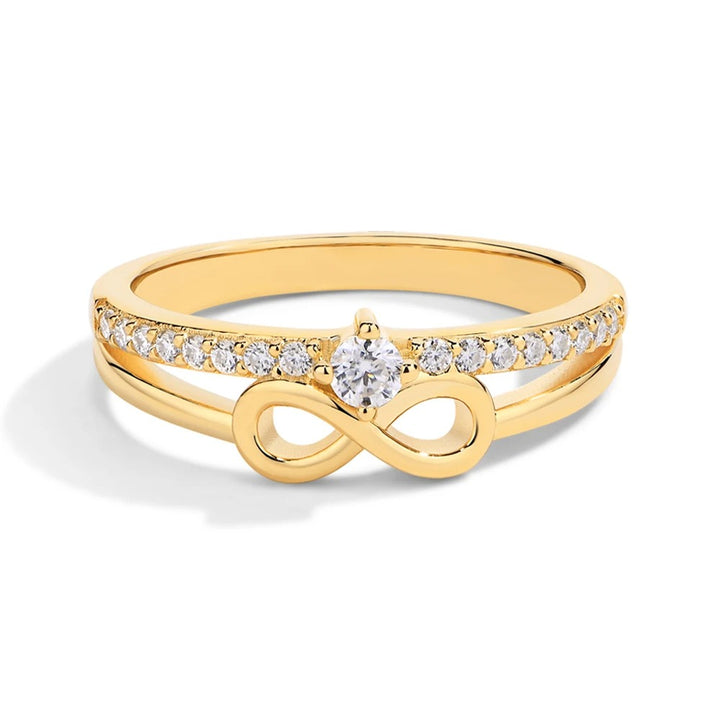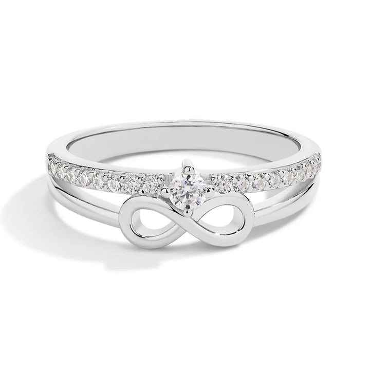 Symbolizing eternal love and endless connection — our Infinity Moissanite Ring blends minimalist beauty with timeless meaning. Handcrafted from genuine 925 sterling silver and plated in 18K white or yellow gold, this elegant band features a brilliant D Color Moissanite centerpiece surrounded by pavé-set stones for added sparkle.