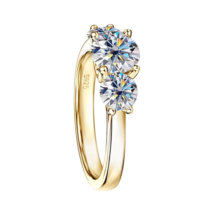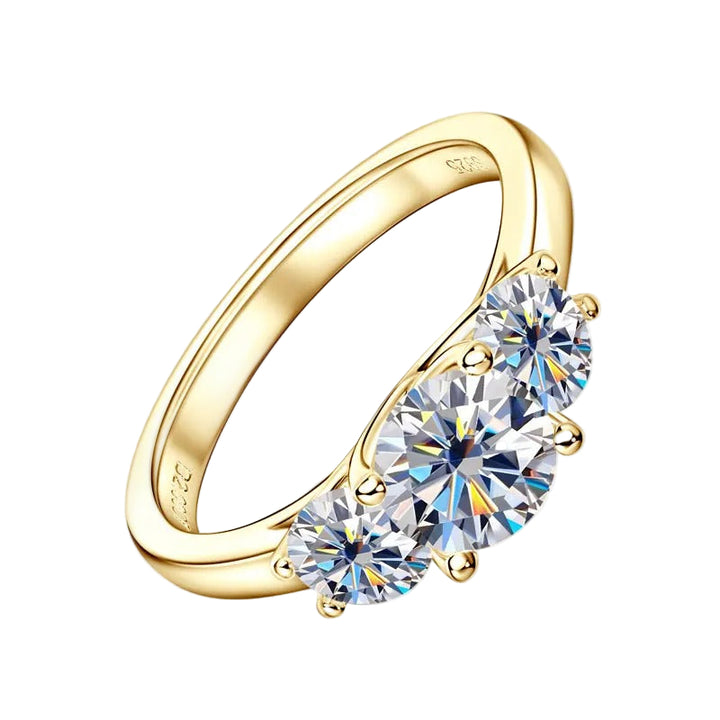Celebrate timeless elegance with the Moissanite Three-Stone Ring. Featuring 2cttw D-E color Moissanite stones set on a sleek 925 sterling silver band, plated in 14k gold or rhodium, this ring radiates brilliance and meaning.
