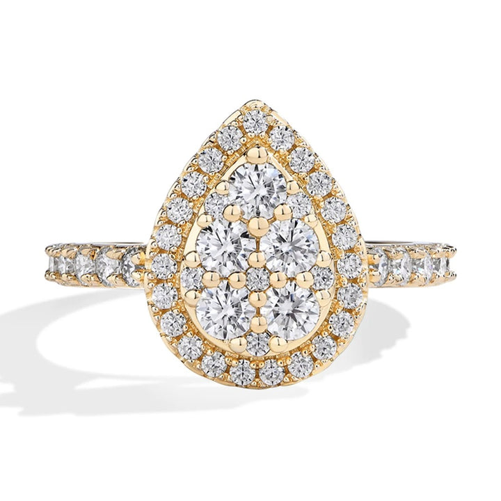 Radiate timeless brilliance with our Luxury Pear Halo Moissanite Engagement Ring. Handcrafted from genuine 925 Sterling Silver and plated in premium 18K gold or rhodium, this elegant piece features a 1.15CT D Color VVS1 Moissanite centerpiece surrounded by a dazzling double halo.