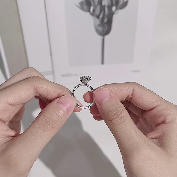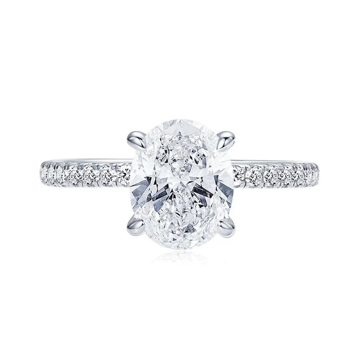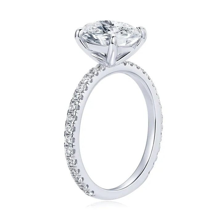 Make every moment unforgettable with the Oval Moissanite Engagement Ring. Featuring a stunning 3CT oval-cut D Color Moissanite center stone, this ring is crafted from genuine 925 sterling silver and plated in rhodium or gold. The pavé band adds extra brilliance, making it a timeless symbol of love and elegance.