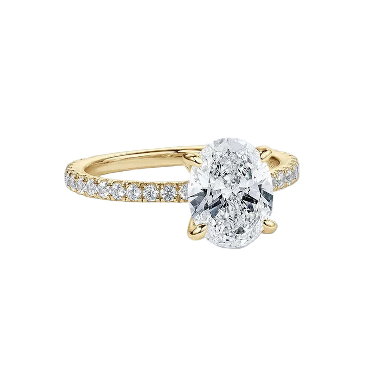 - 3CT oval-cut Moissanite – D-E color, VVS1 clarity